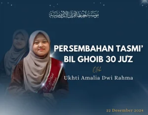 23 Desember: Agenda terakhir diisi dengan Muhasabah Bersama. Sesi “Ibu : Pesan untuk Anakku,” mengajak para santri merenungi makna kasih sayang dan perjuangan seorang ibu melalui sebuah video. Tidak sampai di situ, ternyata para panitia sudah menyiapkan kejutan berupa video dari ibu masing-masing santri. Di dalam video tersebut para ibu pastinya mendoakan kebaikan bagi putri-putri mereka. Tak sedikit yang menangis terharu, baik dari santri maupun para ibu.